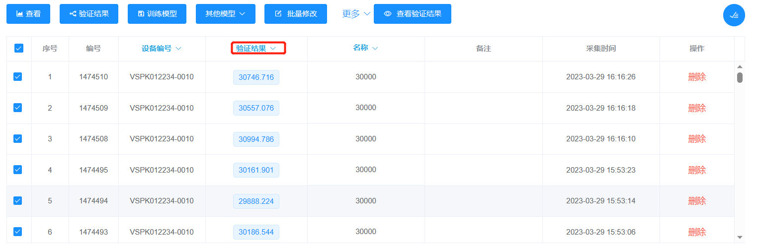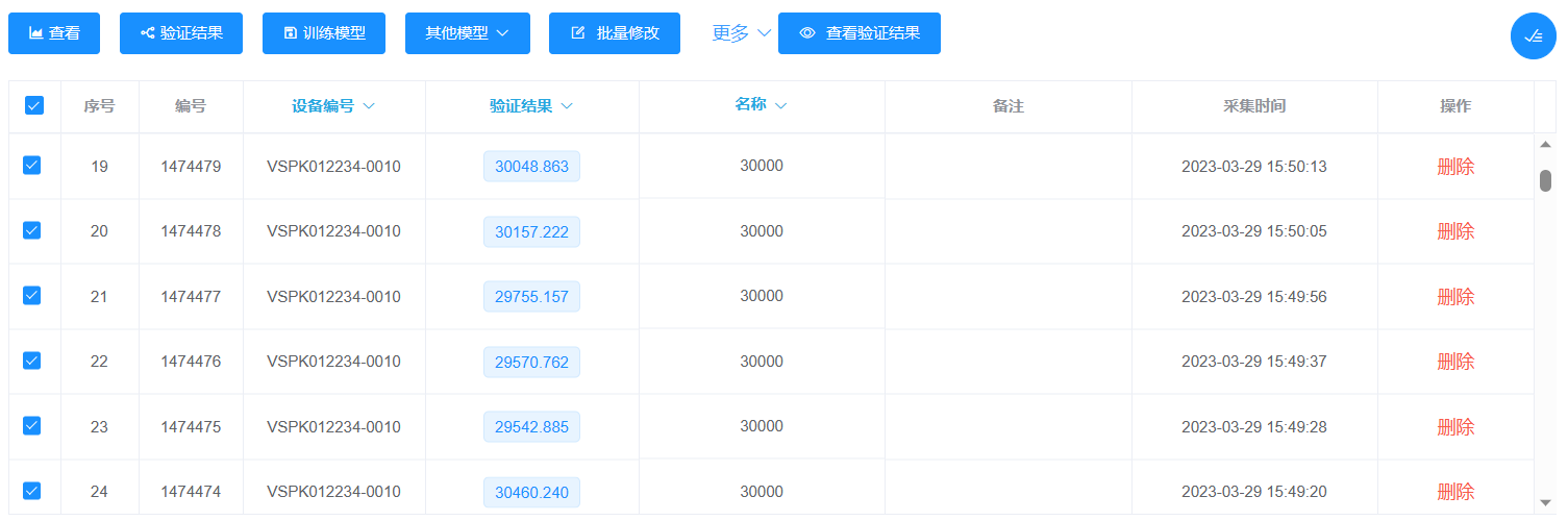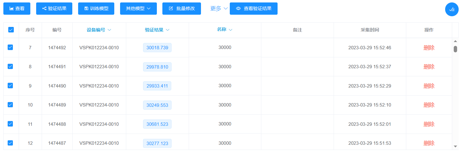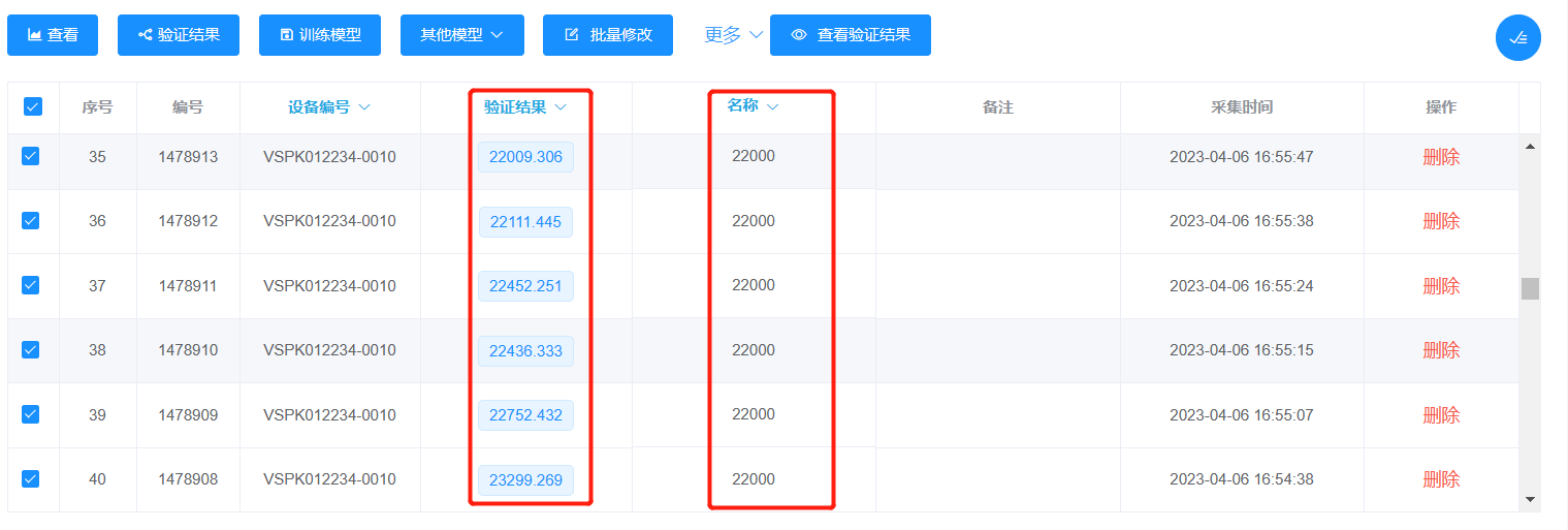 將所采集到的每組數(shù)據(jù)取10條進(jìn)行查看分析,選取線性關(guān)系較為合適的通道使用線性回歸的方式進(jìn)行訓(xùn)練模型,模型訓(xùn)練成功后,取全部數(shù)據(jù)進(jìn)行檢驗(yàn),以30000ppm和20000ppm兩組數(shù)據(jù)檢測結(jié)果為例,如下圖: