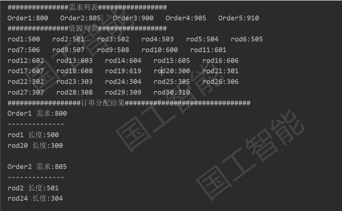 根據(jù)客戶的這個業(yè)務(wù)場景和解決思路,公司研發(fā)人員部建立了一個業(yè)務(wù)Demo。創(chuàng)建 5個需求,30個硅棒作為現(xiàn)有倉庫存儲,需求的長度必須滿足,可超長,但超長的長度不可超過10,超長部分越少越好,可拼接,但是不能超過3個,拼接的個數(shù)越少越好。(在這里為了演示的可閱讀性,假設(shè)硅棒的原料相同,硅棒的截面規(guī)格也相同,只有長度不同,長度單位為毫米,下文在描述時對單位做了省略。)