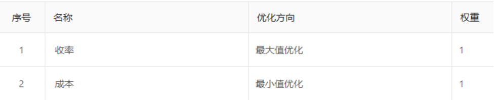 首先,打開國(guó)工智能數(shù)據(jù)大腦平臺(tái),進(jìn)入實(shí)驗(yàn)優(yōu)化界面,對(duì)實(shí)驗(yàn)信息進(jìn)行配置。使用的指標(biāo)分別是收率和成本,要求收率最大化及成本最小化,并可分配指標(biāo)的權(quán)重,如圖2。