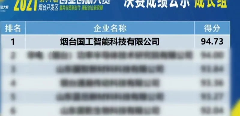 國工智能喜獲煙臺開發區第六屆(2021年)創業創新大賽一等獎