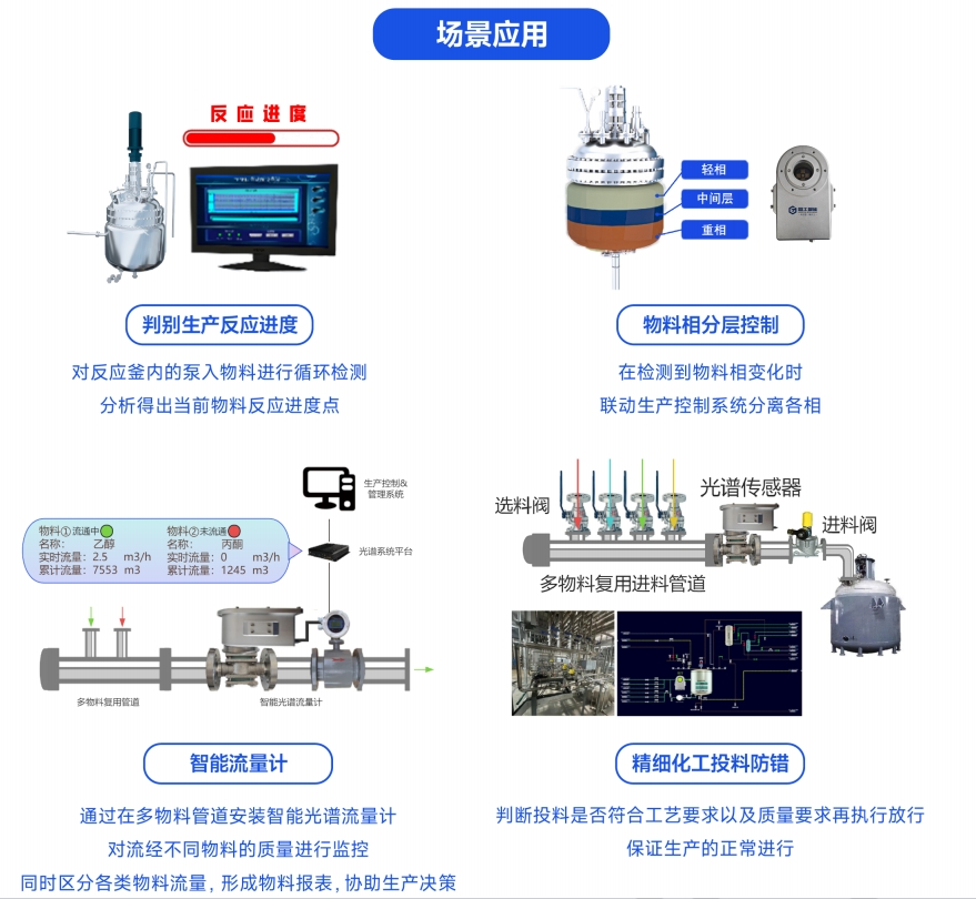 通用型在線光譜儀專門為化工場景所研發(fā),采用本安型防爆傳感器,多光源、大光程,抗干擾能力強,能夠快速的檢測分析得出結果,保證生產(chǎn)現(xiàn)場管理時效性。采用夾持的方式安裝在管道視鏡上,安裝調試方便,采樣覆蓋紫外-可視光-紅外全頻段。無需更換傳感器來調整頻段,可與產(chǎn)線生產(chǎn)控制系統(tǒng)如DCS進行聯(lián)動和數(shù)據(jù)傳輸,同時整套系統(tǒng)接入國工智能MAI系統(tǒng),對產(chǎn)線產(chǎn)品生產(chǎn)進行實時監(jiān)控和決策分析.