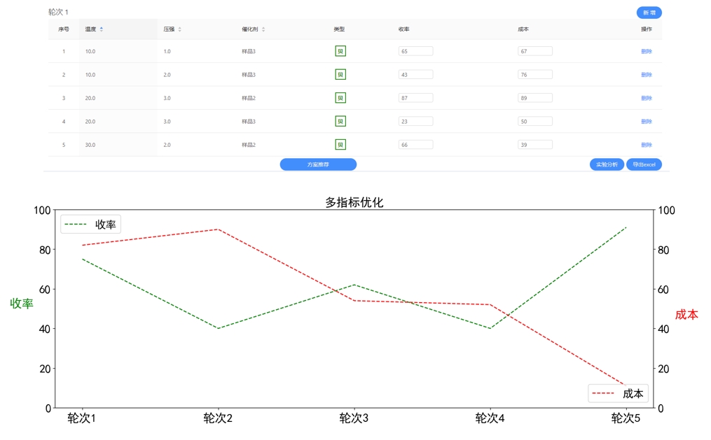 在指定參數探索空間確定最佳實驗條件;在更廣闊的參數空間推薦更優的工藝參數